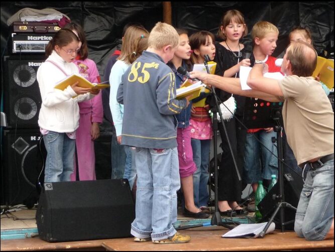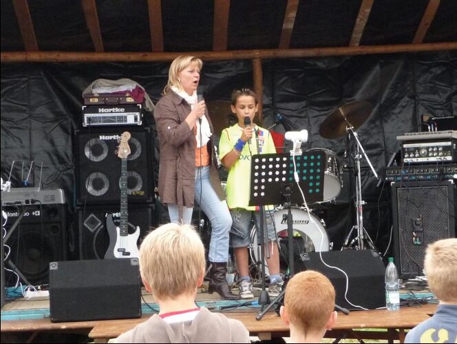 En première partie, un groupe d’enfants qui ont chanté des chansons apprises à l’école. Puis une jolie voix pour interpréter « Mylène Farmer ». A suivit un duo touchant Valérie et son fils, puis se sont succédé d’autres jeunes au micro pour chanter leur tubes préférés de variétés, avant de laisser la place au groupe « ELECTROGENE ».
