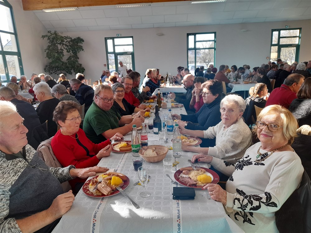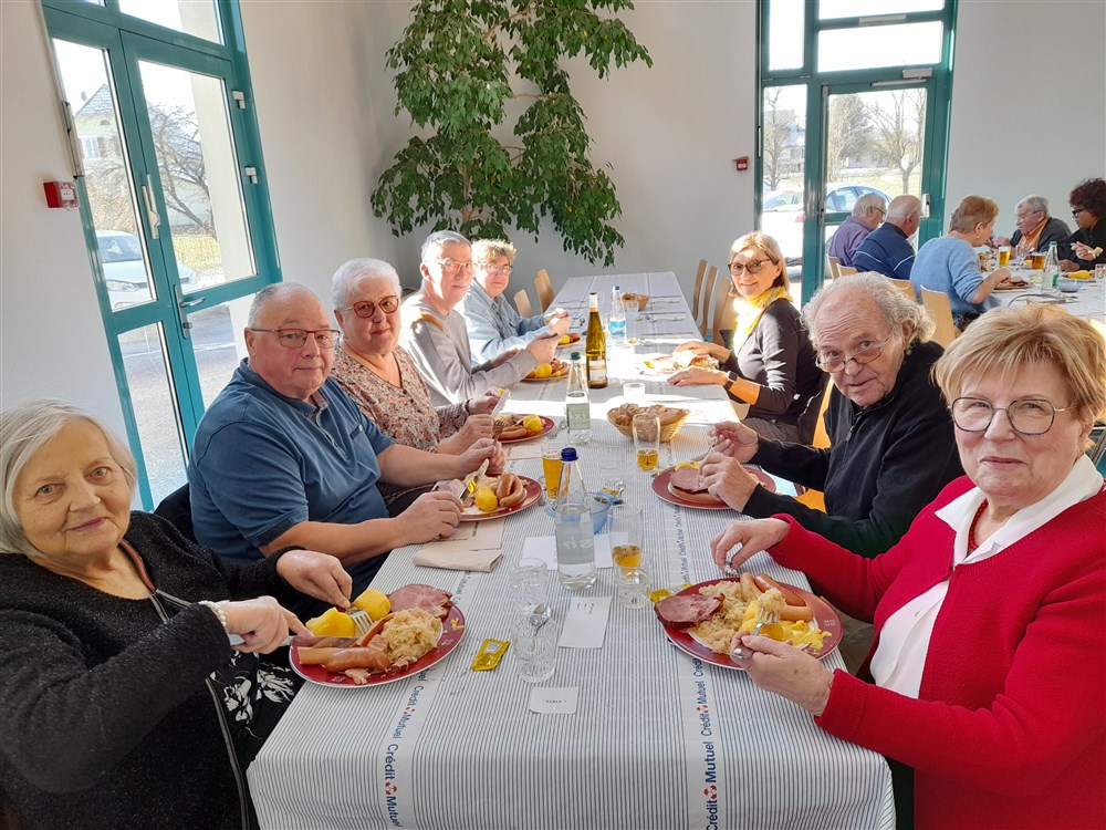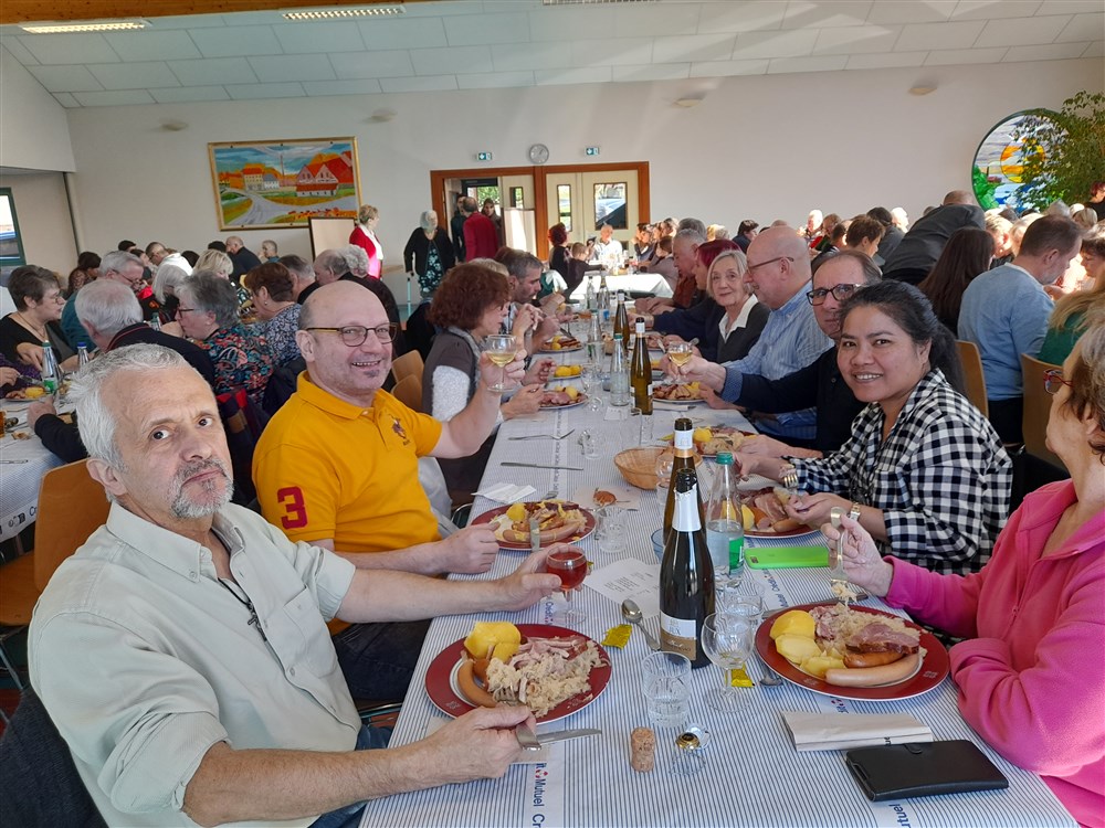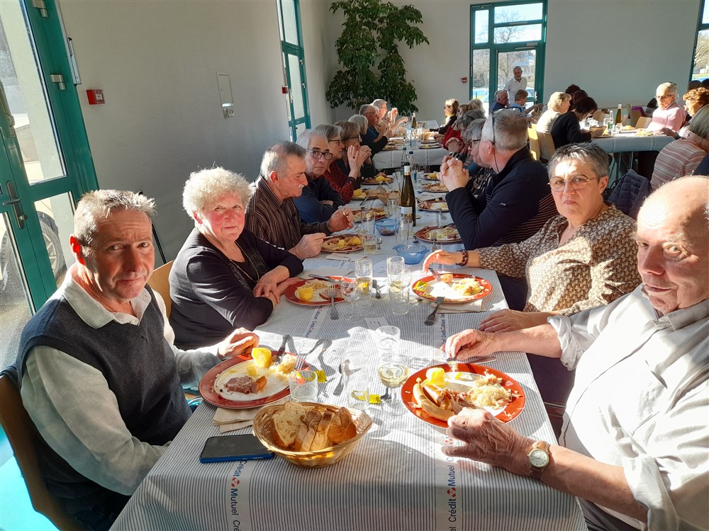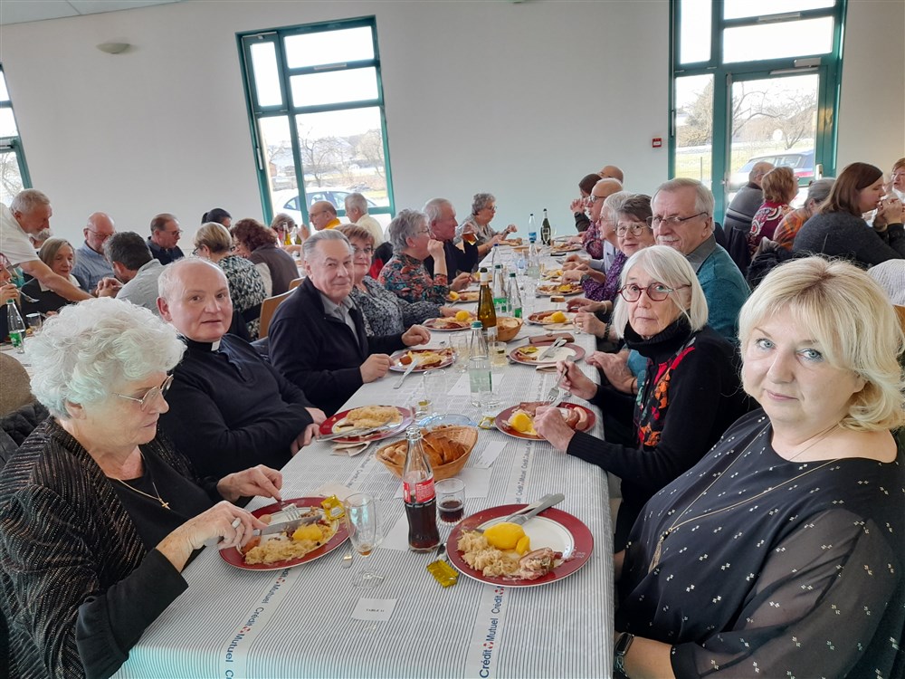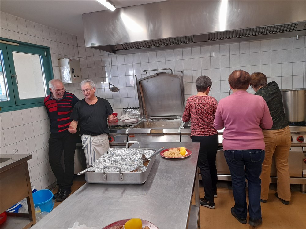Le repas paroissial a eu lieu le dimanche 21 janvier 2024 : au menu la traditionnelle choucroute garnie et le conseil de fabrique a été soutenu pour la 2ème année par Charles Wersinger et de son fils Florian pour son élaboration. Choucroute et son accompagnement étaient excellents. Le dessert : la bonne glace apportée par Pascal Herzog, qui répond toujours présent. Les pâtissières du village ont aussi confectionné des cakes pour agrémenter le café, tout comme le digestif apporté par Philippe.