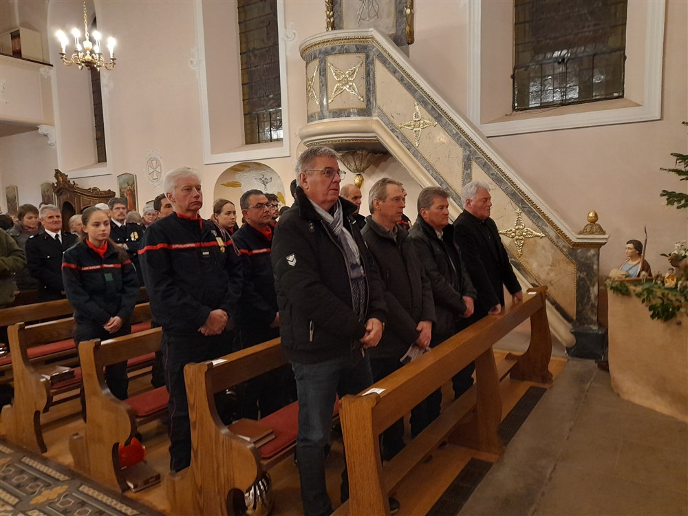 Le samedi 14 décembre a eu lieu la célébration d’une messe dite « Taizé » en l’église de Hagenbach. Parmi l’assemblée fort nombreuse étaient présents les maires des communes, les sapeurs-pompiers et les vétérans du secteur, pour fêter leur patronne, Sainte Barbe.