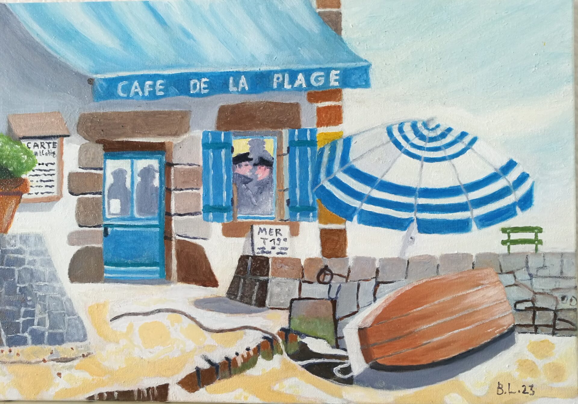 « Au café de la plage », huile sur toile, Bernard Lieby, Hagenb'Art