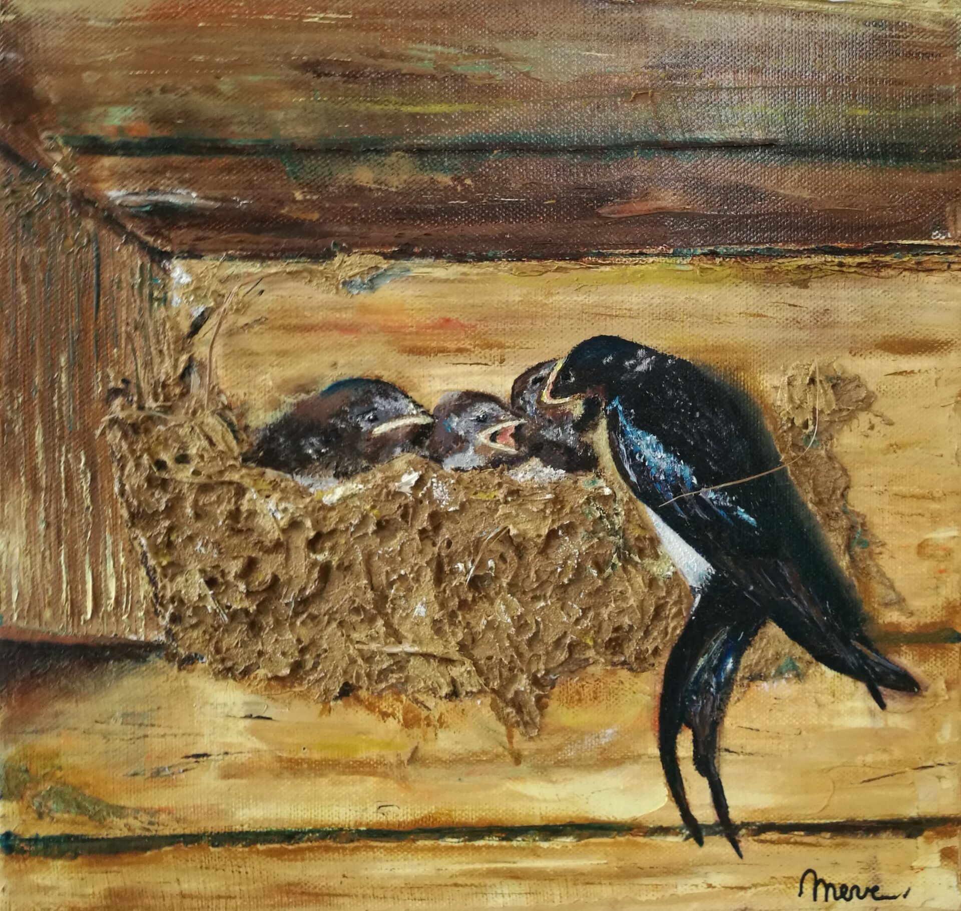 "Ces hirondelles font le printemps", huile sur toile de Marie-Eve Befort, Hagenb'Art