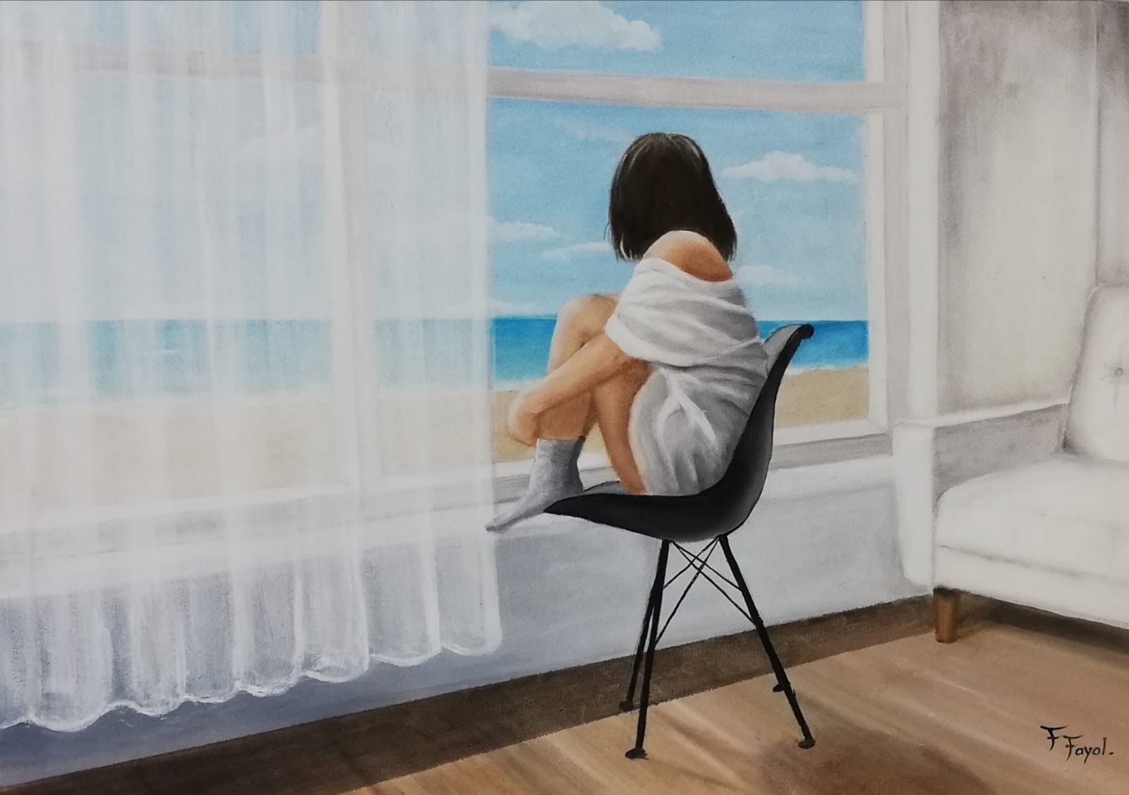 "Contemplation à la fenêtre", huile sur toile de Françoise Fayolle, Hagenb'Art