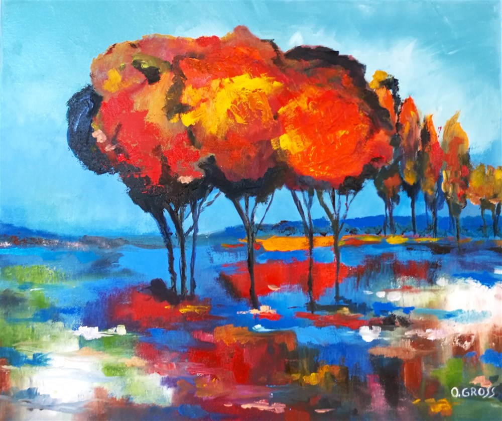 "Flamboiement automnal", huile sur toile de Odile Gross, Hagenb'Art