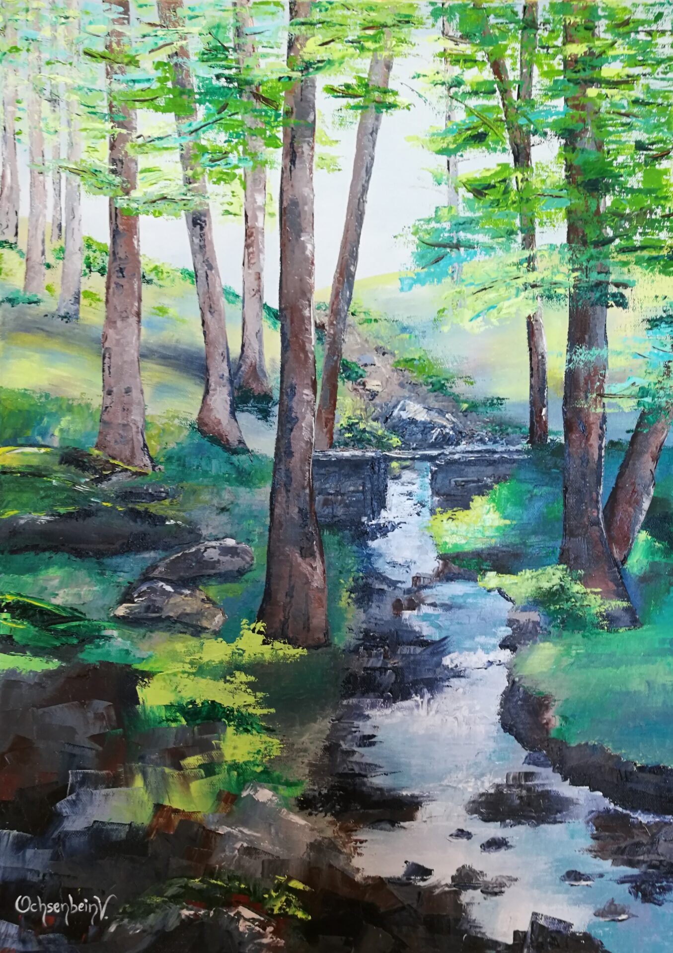 "Le long de l'eau", huile sur toile de Véronique Ochsenbein, Hagenb'Art