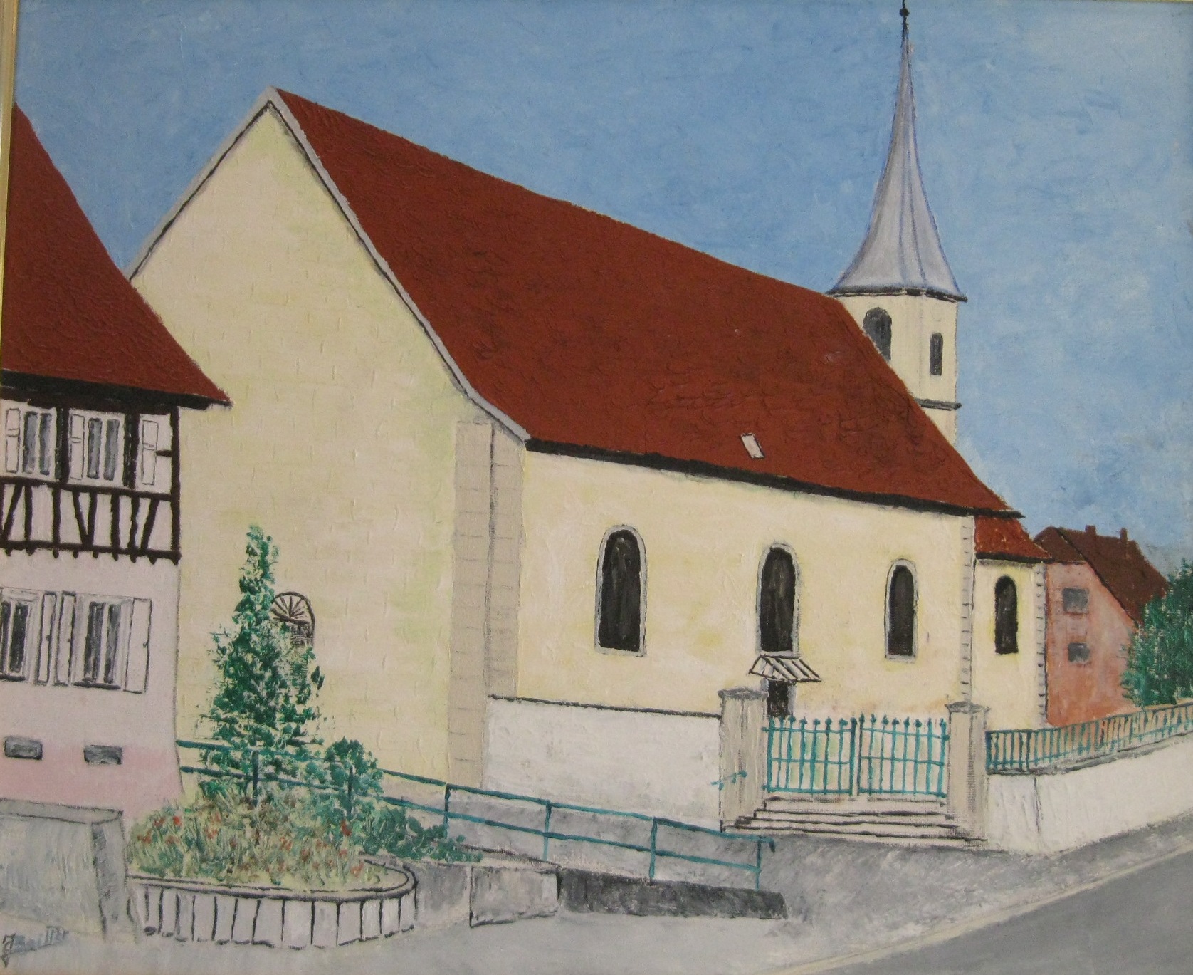"Église de Hagenbach", huile sur toile de Jean-Claude BRILLET, Hagenb'Art
