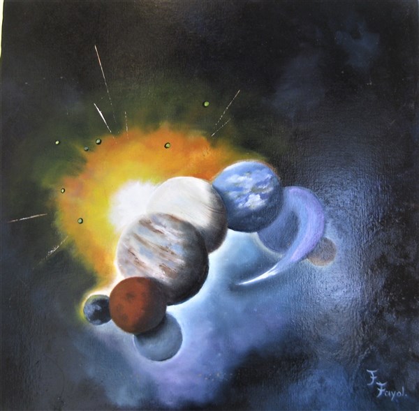 "L'univers des planètes", huile sur toile de Françoise FAYOLLE, Hagenb'Art