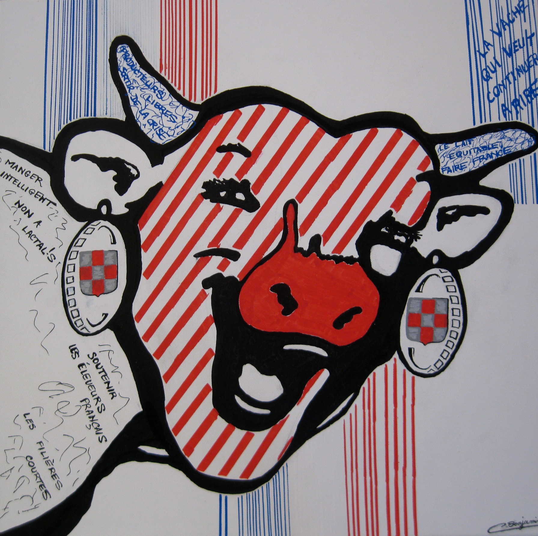 "La vache a toujours le sourire", huile sur toile de Carole BENJAMIN, Hagenb'Art