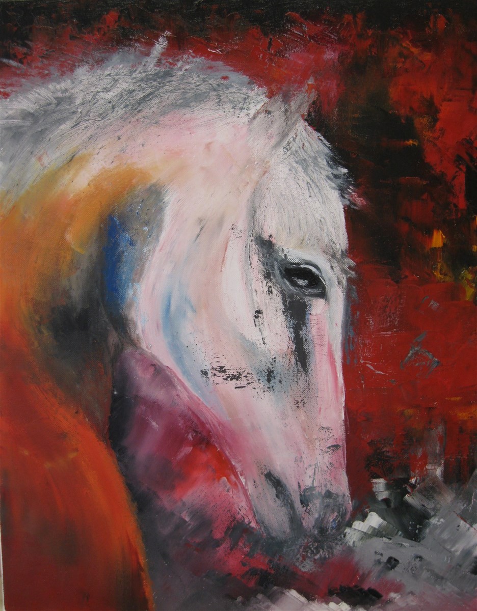 "Lumière sur cheval blanc", huile sur toile de Odile Gross, Hagenb'Art