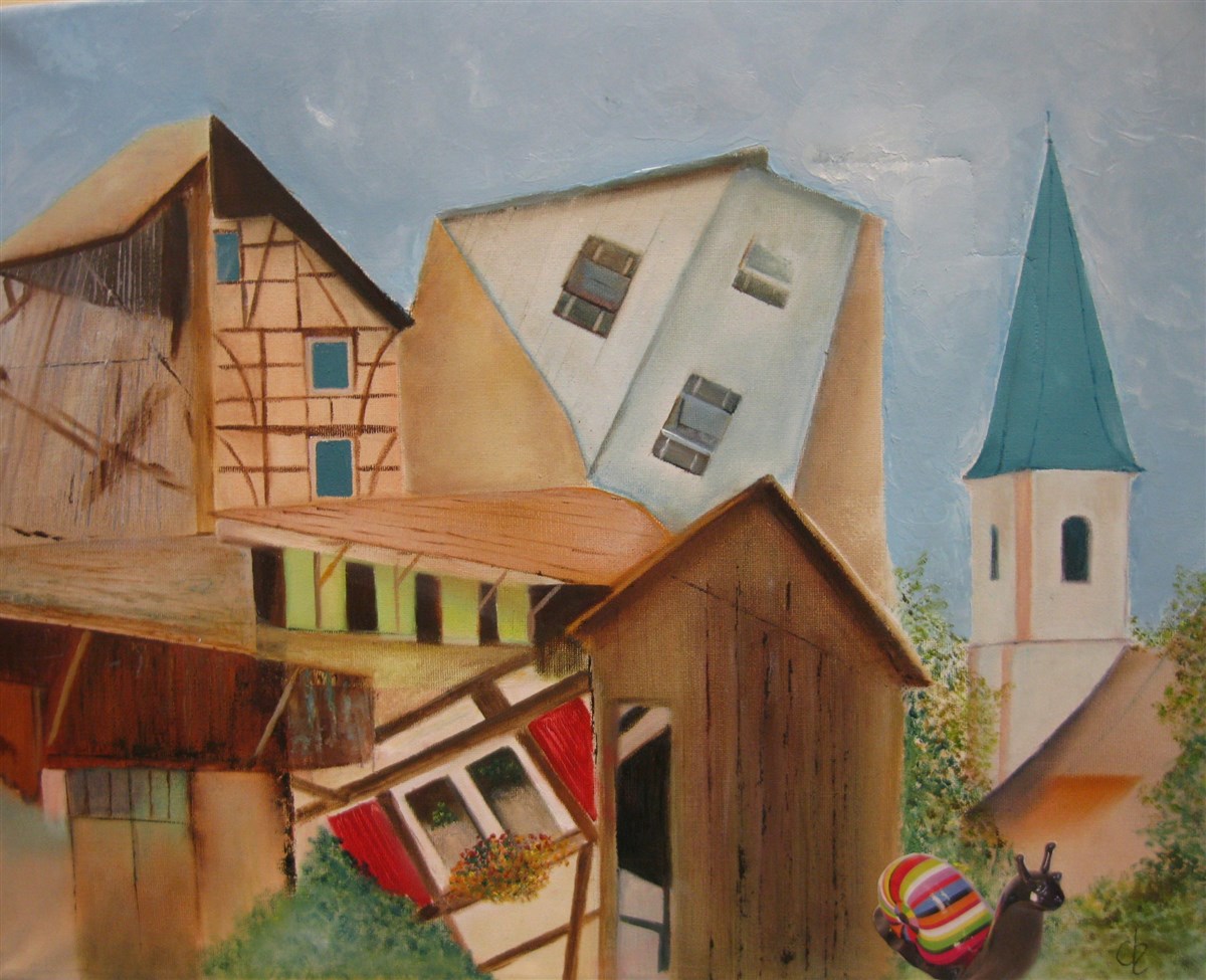 "Point de vue sur Hagenbach", huile sur toile de Chantal CARRIOT, Hagenb'Art
