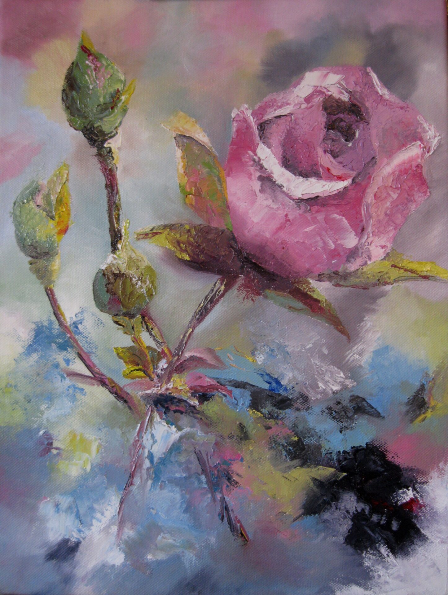 "Rose au jardin", huile sur toile de Joëlle Mousquès, Hagenb'Art