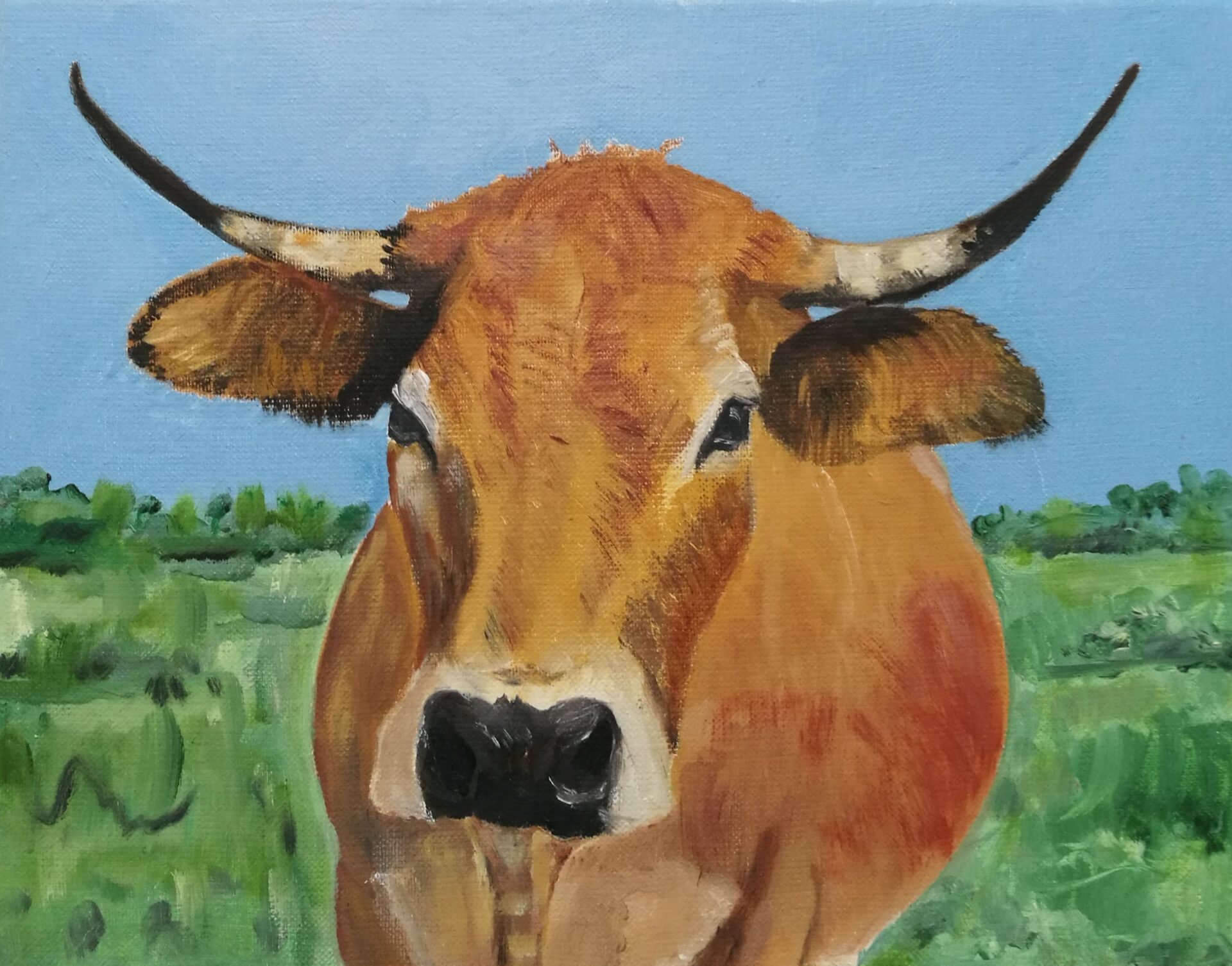 "Vache au pré", huile sur toile de Katia Lahet, Hagenb'Art