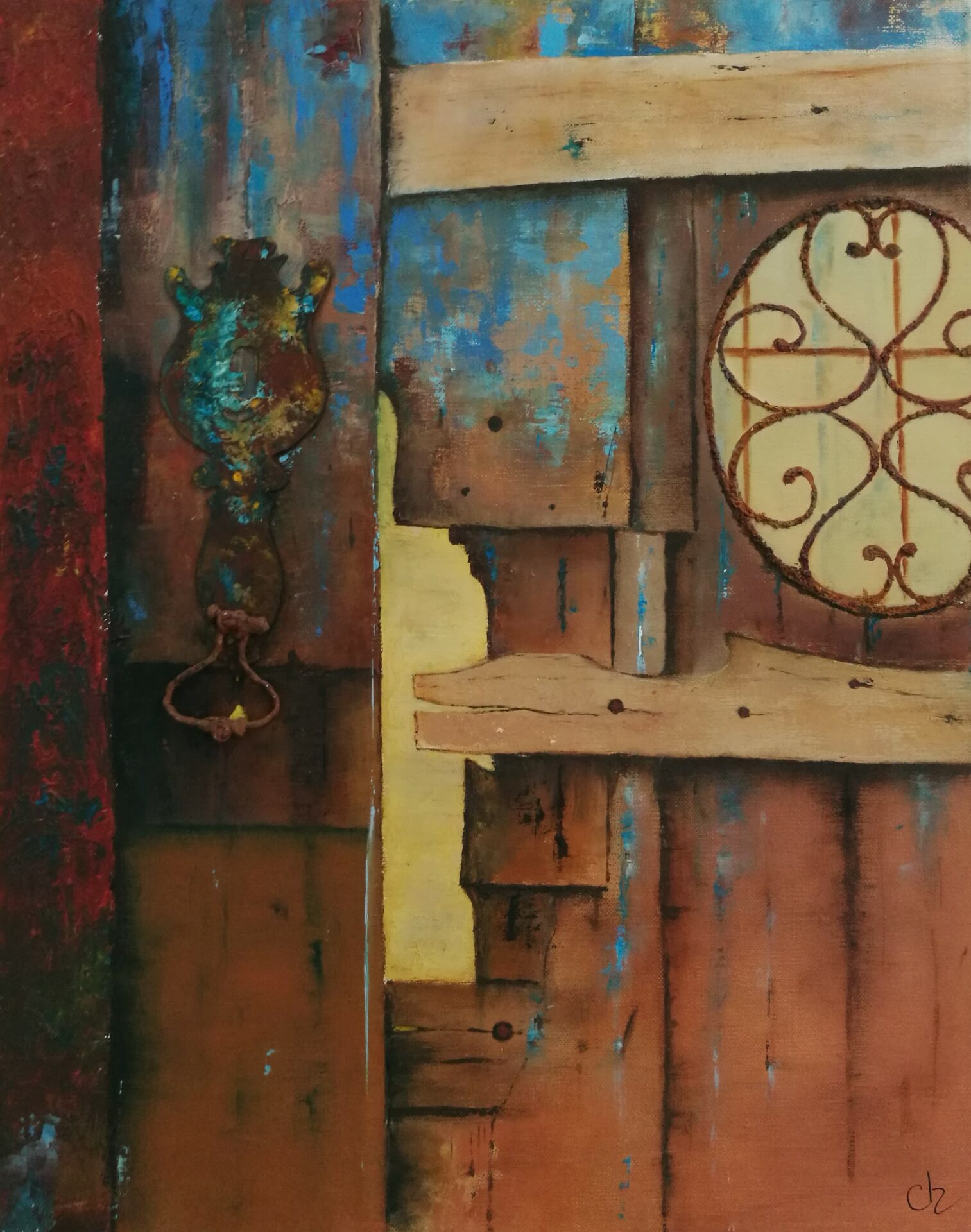 "Vieille porte en bois", huile sur toile de Chantal Carriot, Hagenb'Art