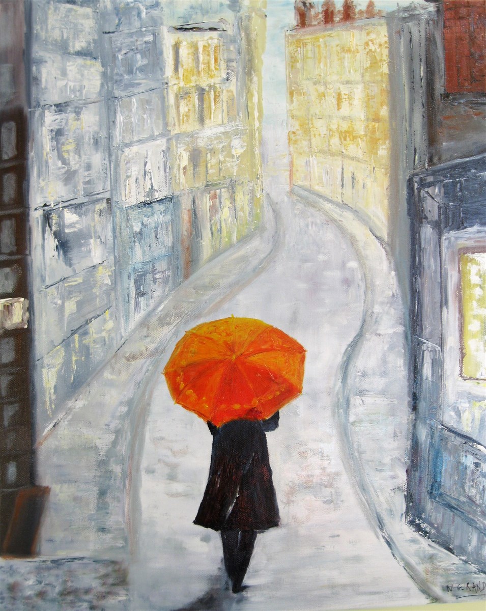 "Pluie sur la ville", huile sur toile de Nadine GROLLAUD RANDÉ, Hagenb'Art