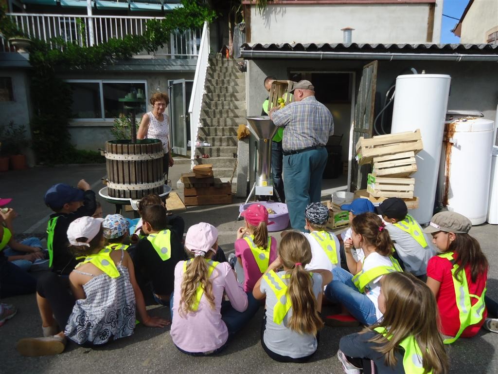Toutes les classes élémentaires du RPI Hagenbach-Gommersdorf, étaient invitées, à tour de rôle, par Hubert Stemmelen pour un après-midi « jus de pomme ». Ce lundi, c’étaient les CP/CE1 et les CE2/CM1 encadrés par Madame Février et Monsieur Scherrer, les instituteurs.