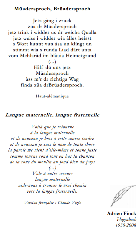 “Destin poétique exemplaire, que celui d’Adrien Finck, pour les écrivains alsaciens de notre génération” (Claude Vigée).