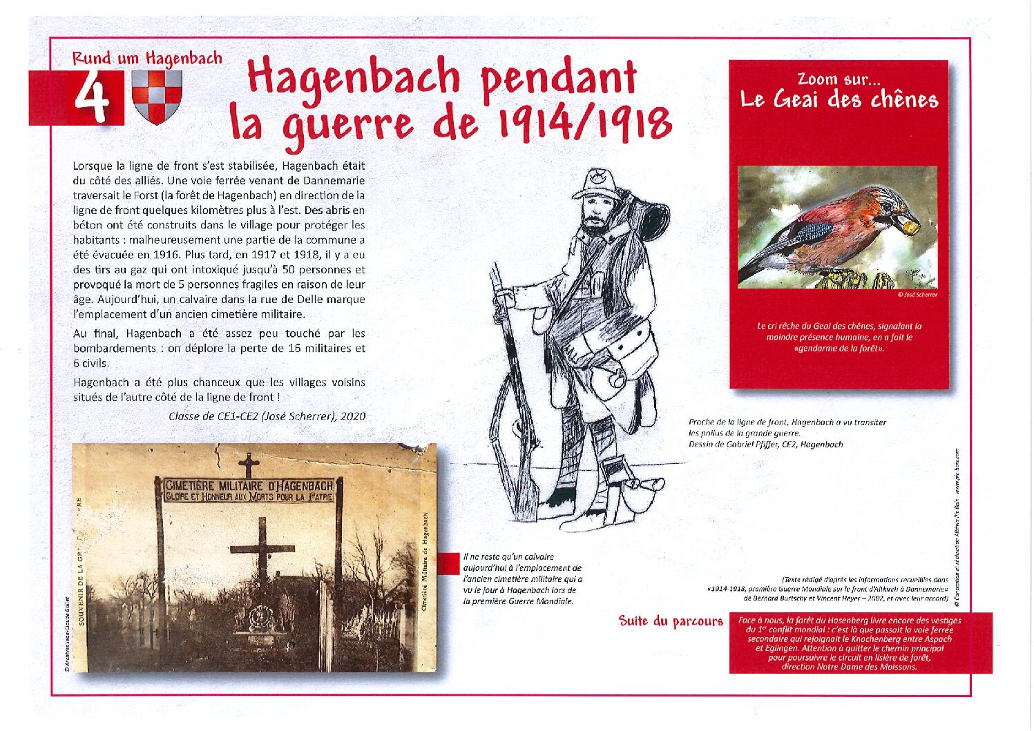 Ce sont les enseignants des 3 classes élémentaires du village, qui dans le cadre d’une action du projet d’école ont eu l’idée de créer un sentier d’interprétation et de découverte autour de Hagenbach.