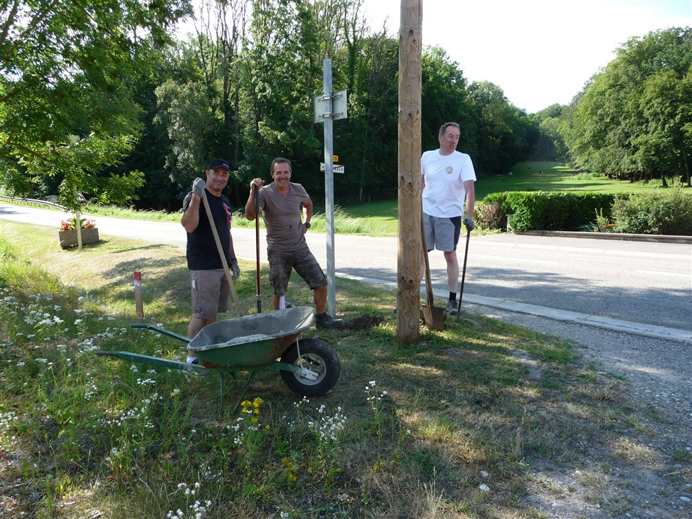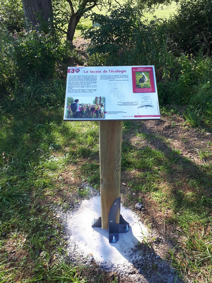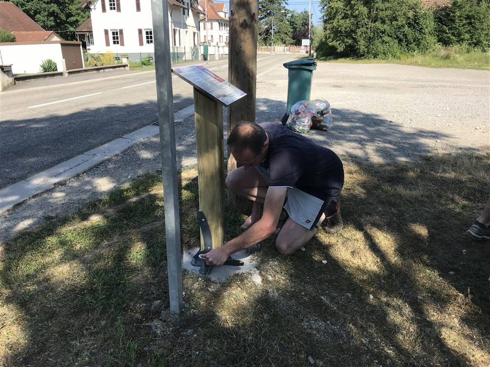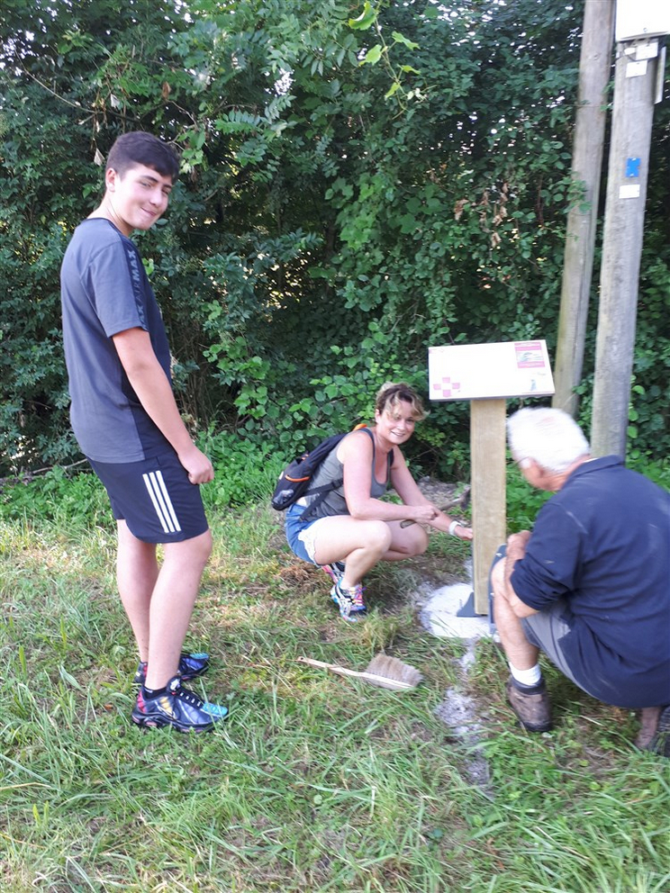 Les plaquettes de balisage ont été posées par les enseignants et les pupitres d’information et le panneau d’accueil ont été scellés au sol par les membres du conseil municipal.