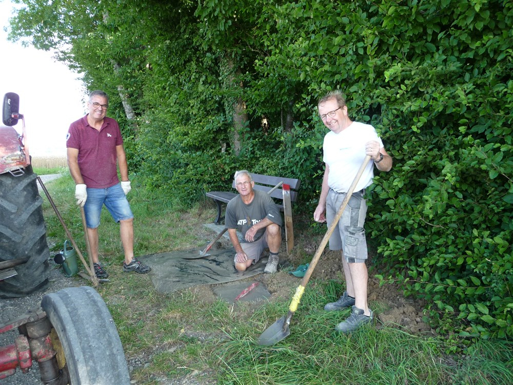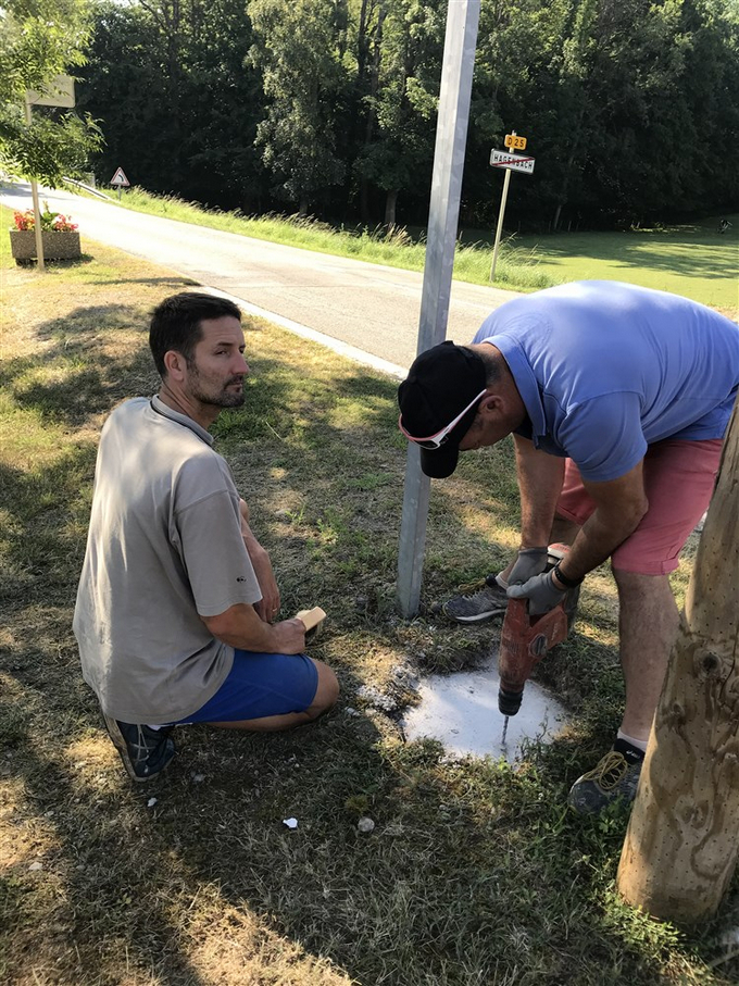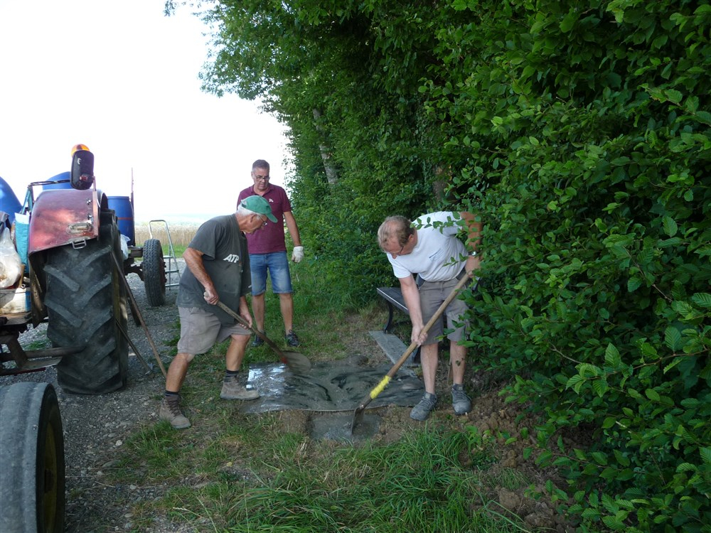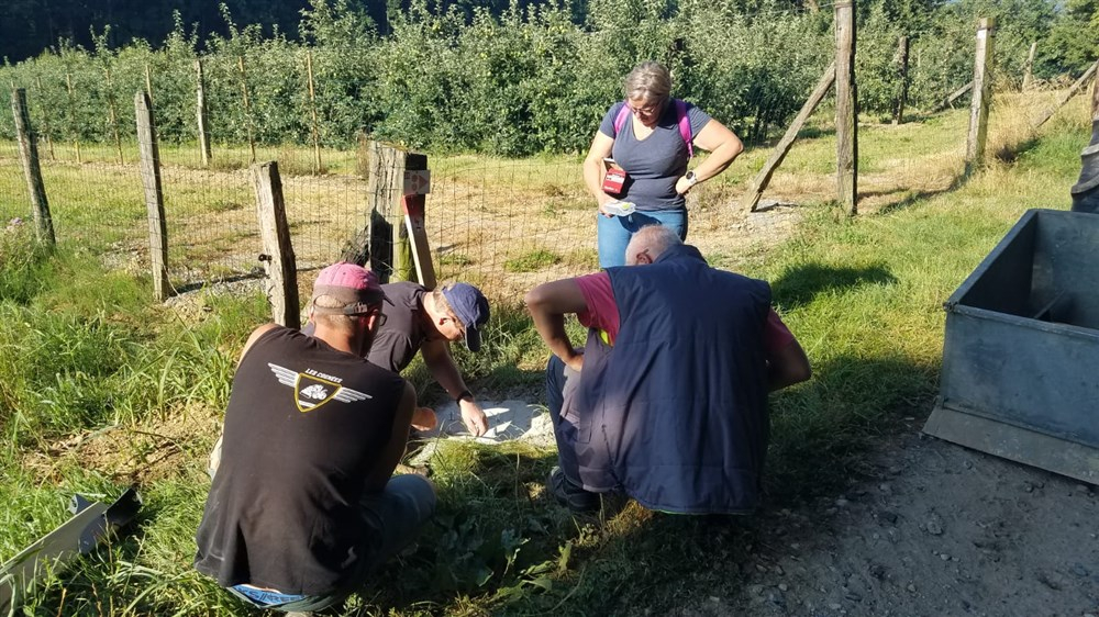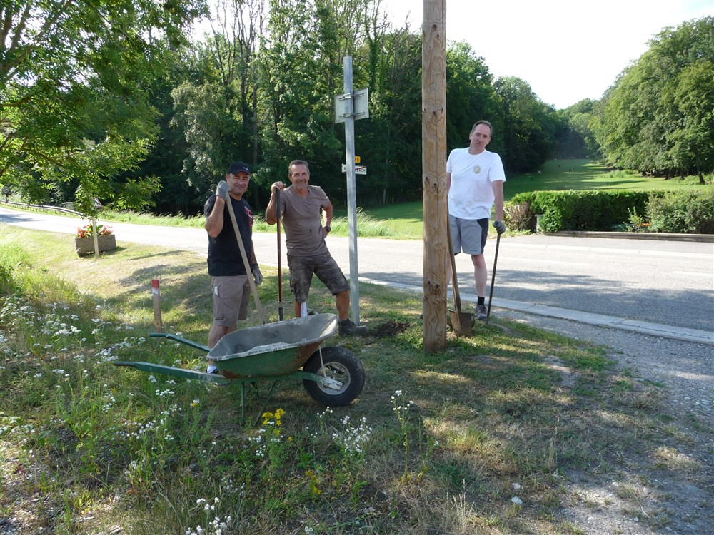 Les plaquettes de balisage ont été posées par les enseignants et les pupitres d’information et le panneau d’accueil ont été scellés au sol par les membres du conseil municipal.