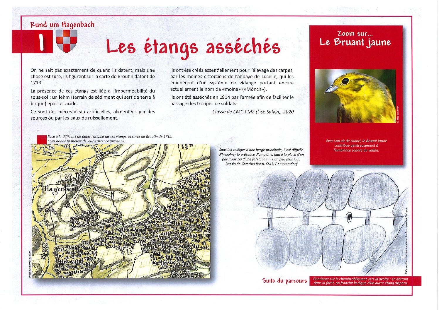 Ce sont les enseignants des 3 classes élémentaires du village, qui dans le cadre d’une action du projet d’école ont eu l’idée de créer un sentier d’interprétation et de découverte autour de Hagenbach.