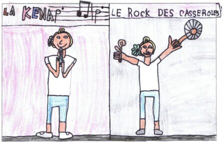 Pour clore le spectacle, les CE2-CM1 et les CM2 ont chanté le « Rock des casseroles » : deux couples de filles ont dansé (Coralie, Sarah, Aline et Pauline) et nous avions des ustensiles de cuisine à agiter au moment du refrain et à la fin. Après deux heures de spectacle, tout le monde était ravi, mais aussi affamé et assoiffé.
