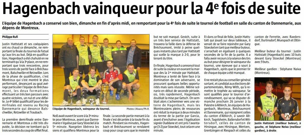 ASHB – Vainqueur du tournoi de foot en salle de Dannemarie