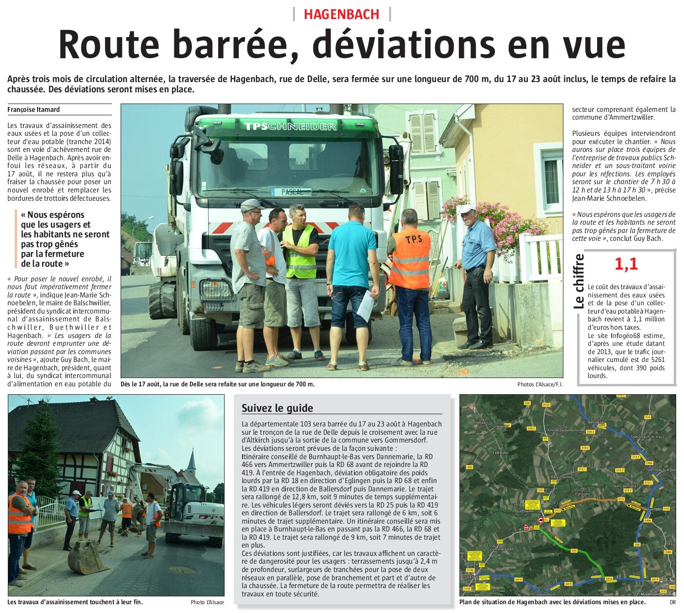 Les communes de BALSCHWILLER, BUETHWILLER et HAGENBACH ont fait le choix de se rapprocher pour aborder ensemble l’important chantier d’assainissement collectif. Les directives européennes et la législation nationale en matière d’environnement imposent aux collectivités territoriales d’organiser le contrôle des installations individuelles de traitement des eaux usées (dans le cadre d’un assainissement non collectif) et/ou la mise en place de collecteurs et de stations de traitement (dans le cadre d’un assainissement collectif).