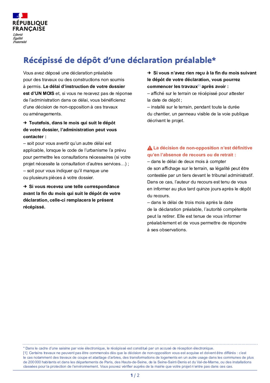• Dépôt dématérialisé sur le guichet numérique en cliquant ici
